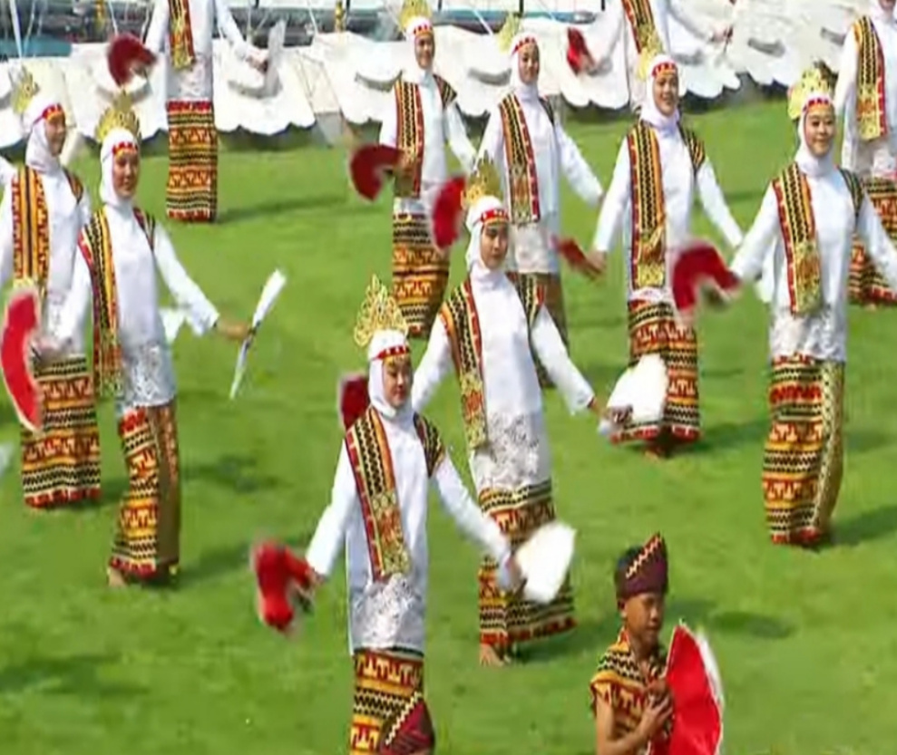 Diiringi gending khas Lampung puluhan bocah ini dengan lincah meliuk-liukkan badan sambil memainkan kipas warna merah. Ribuan peserta upacara yang duduk di tribun mengabadikan indahnya tarian Catik Kipas Melinting pakai ponsel mereka.